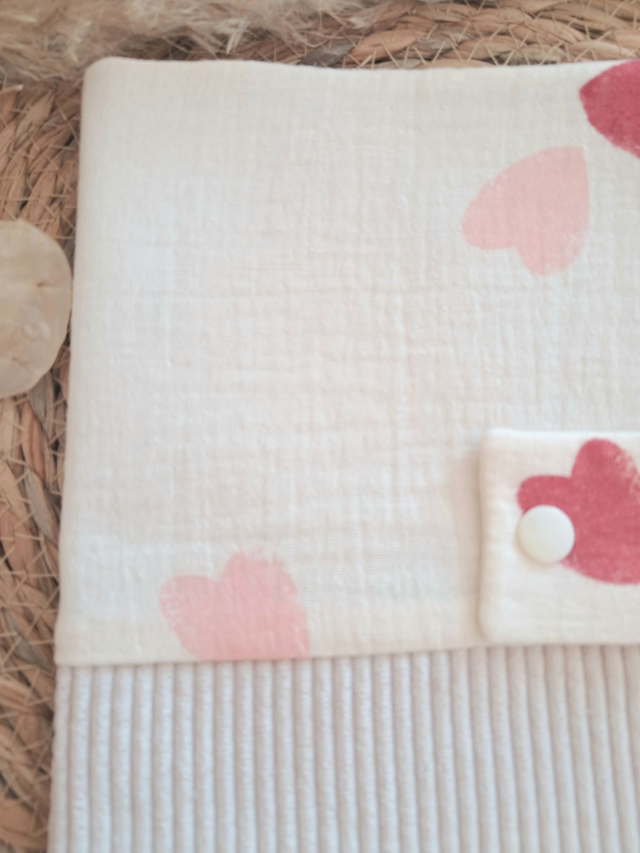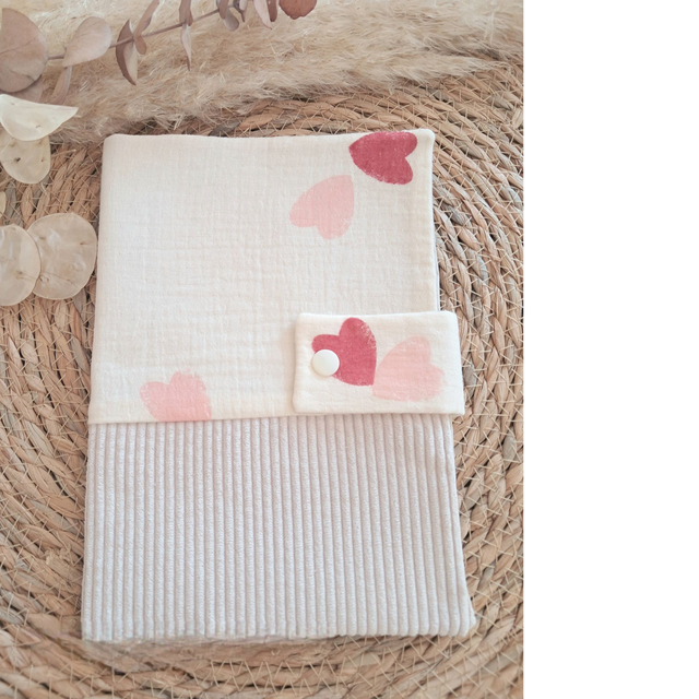 Protège carnet de santé en velours côtelé et double gaze de coton.