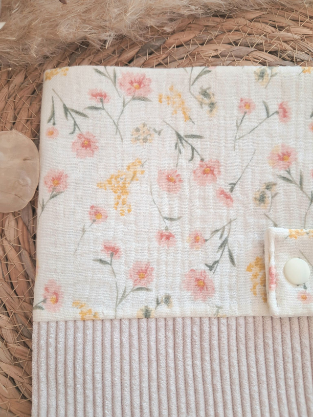 Protège carnet de santé en velours côtelé et double gaze de coton.