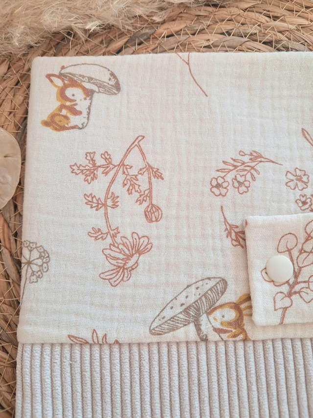 Protège carnet de santé en velours côtelé et double gaze de coton.