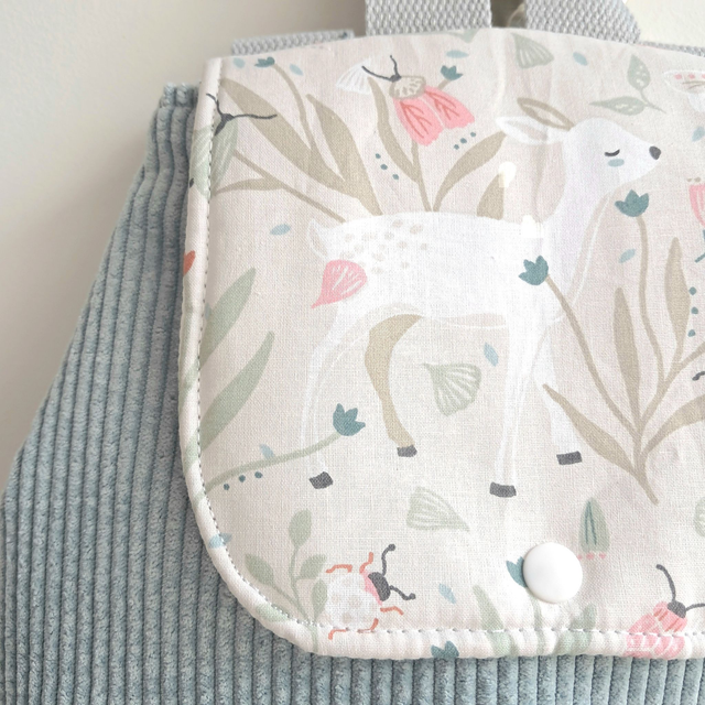 Sac à dos enfant idéal crèche et maternelle, en velours côtelé et coton fantaisie motif biche bleu ciel🌼